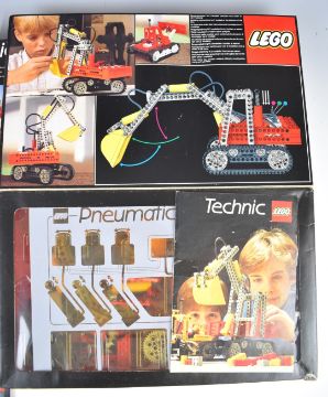 Four Lego Technic sets comprising 8851 Excavator, 8841 Dune Buggy, 8030 Universal Set and 8700 Power Pack, in original boxes with instructions.