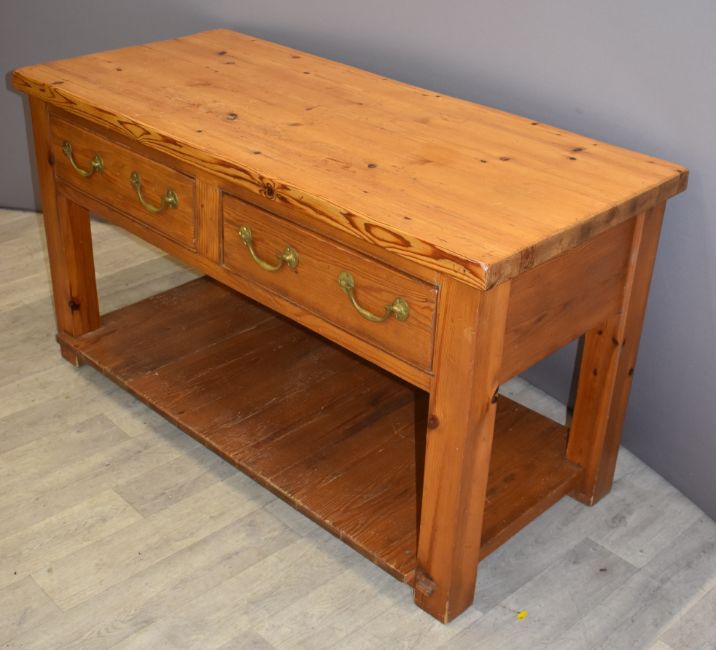 Pine two drawer buffet or small sideboard with undershelf, W132 x D60 x H73cm