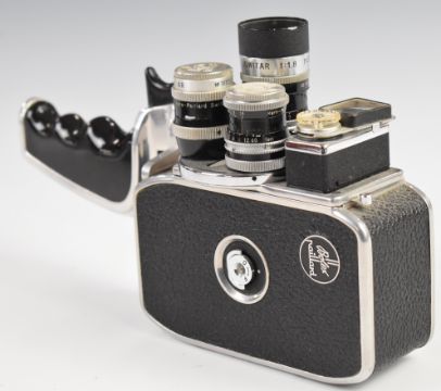 Bolex Paillard D8L 8mm cine camera with 1:1.9 5.5mm, 1:1.8 13mm and 1:1.8 35mm lenses, in carry case