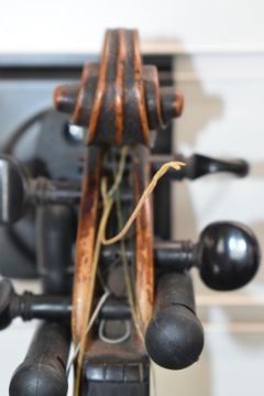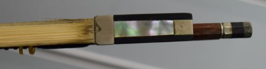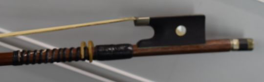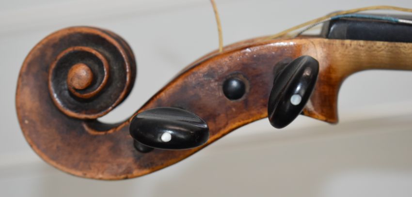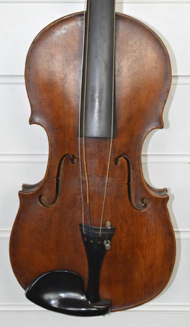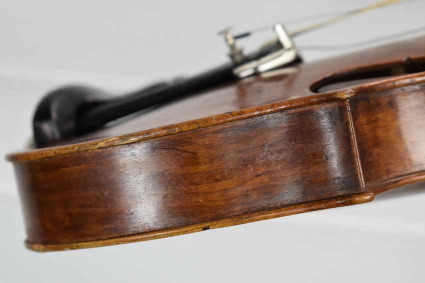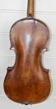 Georg Hornsteiner single back violin, c1790s, with bow, label reads 'Georg Hornsteiner geigenmacher u. handler in Mittenwald an der Iser 179*', overall length 58.6cm, body 35.8cm, lower bout 20.1cm, upper bout 16.6cm, together with bow, length 74cm, weight 60g and case