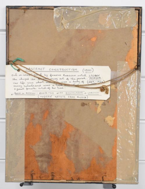 Attributed to Lyubov Popova (Russian 1889-1924) abstract constructivist study of circle and segments, dated 21 lower right, 36 x 27cm, in black painted frame