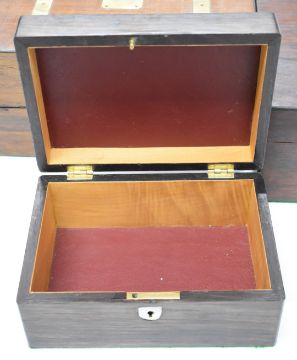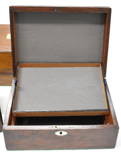 19thC mahogany writing slope together with two jewellery or workboxes, width of largest 29.5cm
