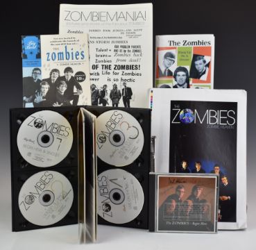 The Zombies - Zombie Heaven (ZOMBOX 7) 4 CD box set, signed by Colin Blunstone, Zombie Heaven launch party programme / invitation signed by all five Zombies and Proof Begin Here promo CD signed by all five members, plus Zombiemania! and Hung Up On A Dream - consigned by Andy Barnes (Colin Blunstone Fan Club 1995-2015)