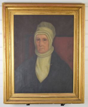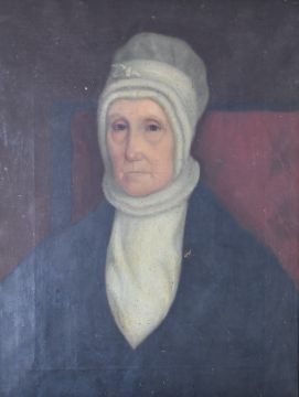 19thC oil on canvas portrait of a lady, believed to be Mary Crabtree, 57 x 43cm, in period gilt frame