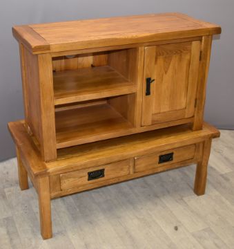 Contemporary solid oak coffee table W110 x D60 x H47 and a small cupboard unit / television stand W100 x D42 x H60cm