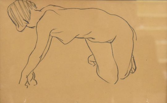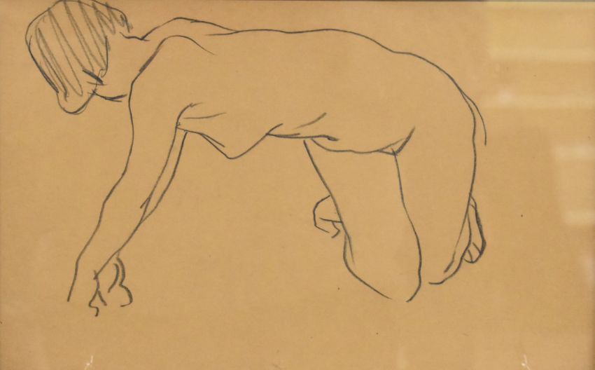 Attributed to Tom Purvis (railway and other poster artist 1888-1959), two charcoal sketches of nude ladies, 21 x 34cm, in black frames