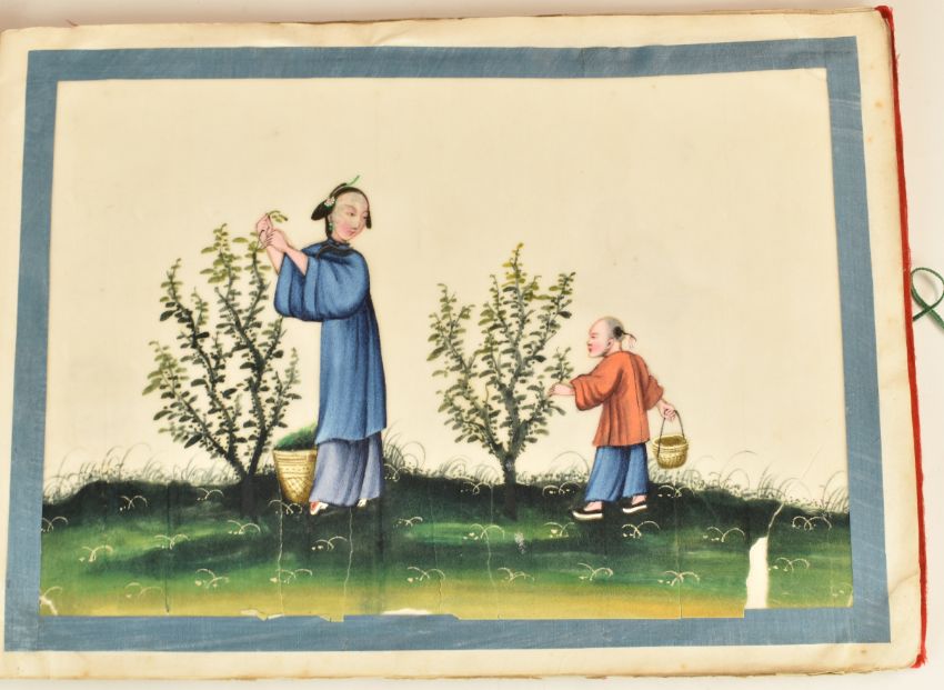 Chinese 19th / 20thC book 'The Story of Tea', with twelve watercolours on rice paper, 21.5 x 30cm