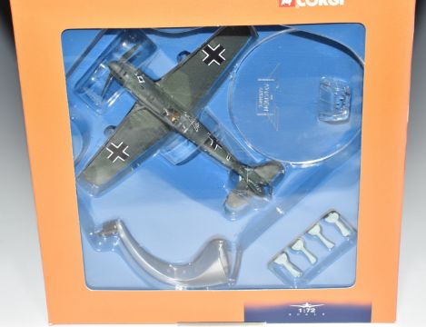Three Corgi The Aviation Archive Flying Aces 1:72 scale diecast model aircraft together with a 1:144 scale Avro Lancaster The Dam Busters Special Edition 47304, all in original boxes with certificates.