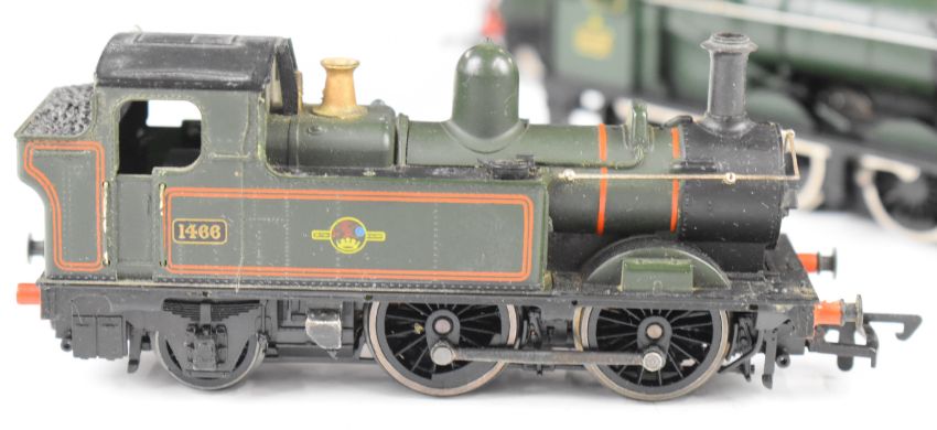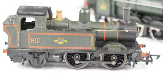 Four Hornby, Mainline and Airfix 00 gauge model railway locomotives comprising three 14xx tank locomotives and a Collet 0-6-0 tender locomotive
