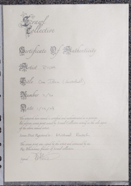 Ryan Callaman 'Ryca' (born 1981) signed limited edition (8/10) print Ona Islam, 76 x 50 cm