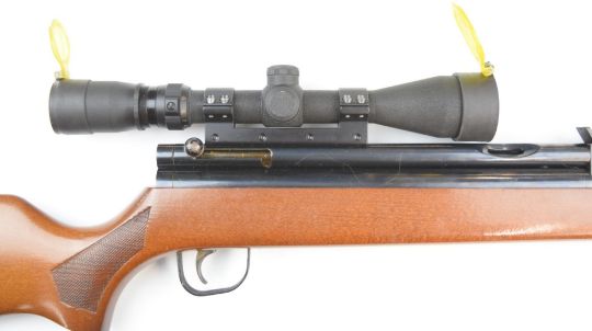 Sterling Armament HR81 .22 bolt-action under-lever air rifle with chequered semi-pistol grip, adjustable trigger and sights and Simmons Whitetail 3.5-10x40 WA scope, serial number 4058.