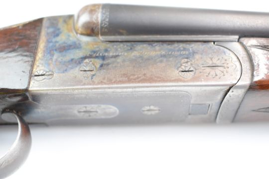 AYA 28 bore side by side shotgun with named and border engraved locks, border engraved underside, trigger guard, top plate and fences, chequered grip and forend, double trigger and named 27 inch barrels, overall length 118cm, length of pull 34cm, serial number 490962 PLEASE NOTE THAT A VALID RELEVANT FIREARMS/SHOTGUN CERTIFICATE IS REQUIRED TO HANDLE/PURCHASE THIS ITEM.