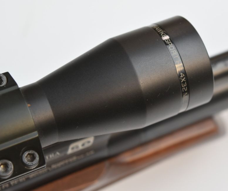 BSA Ultra SE .177 PCP air rifle with shaped and chequered semi-pistol grip and forend, raised cheek-piece, adjustable trigger, 10-shot magazine, sound moderator and Hawke Sport HD 4x32 Mil Dot scope, serial number USE-770839-AB.
