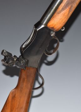 BSA .220 underlever-action target rifle with Parker-Hale Model 7 adjustable peep hole target sights, sling mounts and 29 inch barrel, overall length 112cm, serial number 15779. PLEASE NOTE THAT A VALID RELEVANT FIREARMS/SHOTGUN CERTIFICATE IS REQUIRED TO HANDLE/PURCHASE THIS ITEM.