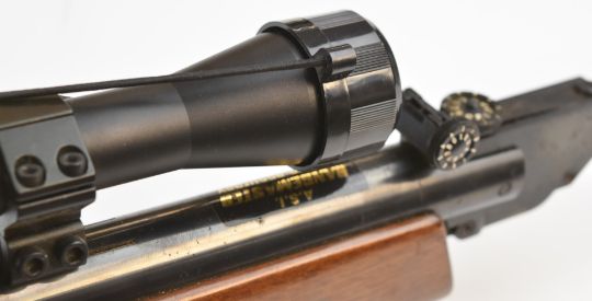 ASI Rangemaster .22 air rifle with semi pistol grip, raised cheek piece, adjustable sights and 4x32 scope, serial number 171772