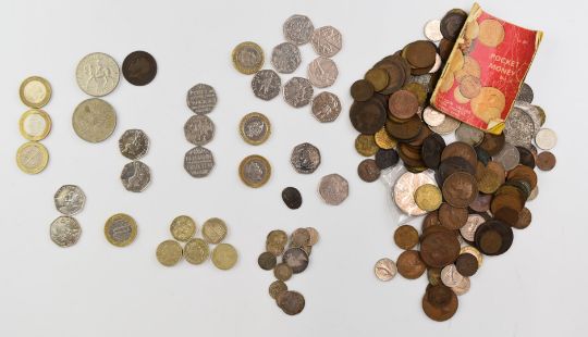 A collection of UK and some overseas coinage, George III onwards, includes small silver content, collectable £2, 50p pieces including Beatrix Potter and Olympic etc and a small bronze Roman coin