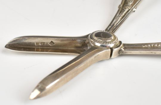 Victorian hallmarked silver grape scissors, Sheffield 1881, maker Martin, Hall & Co, length 16cm, weight 104g