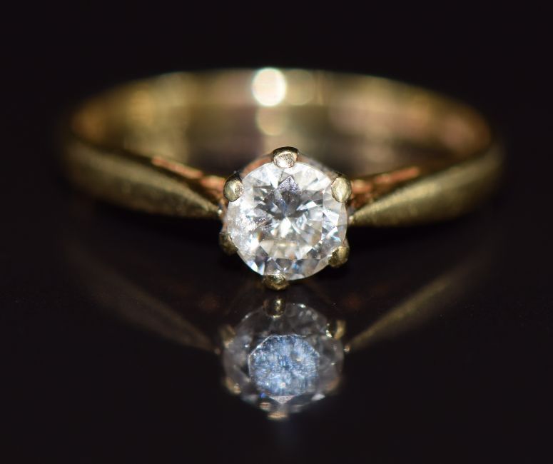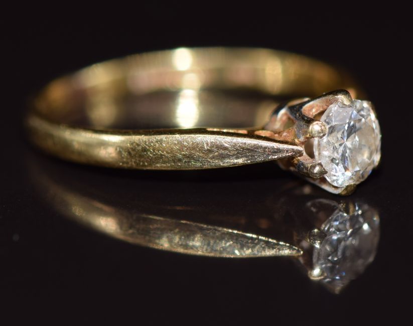 An 18ct gold ring set with around cut diamond of approximately 0.33ct, 1.8g, size G