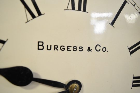 Burgess and Co South Norwood single fusee oak cased clock, possibly of railway interest, overall diameter 37cm