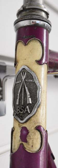 BSA vintage 'Tour of Britain Sports' racing bicycle frame, frame number 11313, with Reynolds 531 tubing, decorative lugs and Benelux derailleur, frame size 58cm