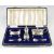 Elizabeth II hallmarked silver silver three piece cruet set with blue glass liners, Birmingham 1959, maker William Suckling Ltd, in original fitted case, weight of silver 157g
