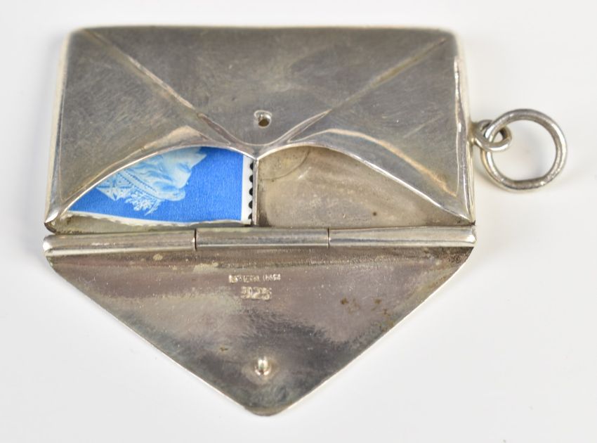 Two novelty stamp cases formed as envelopes, each marked 925, weight 28g
