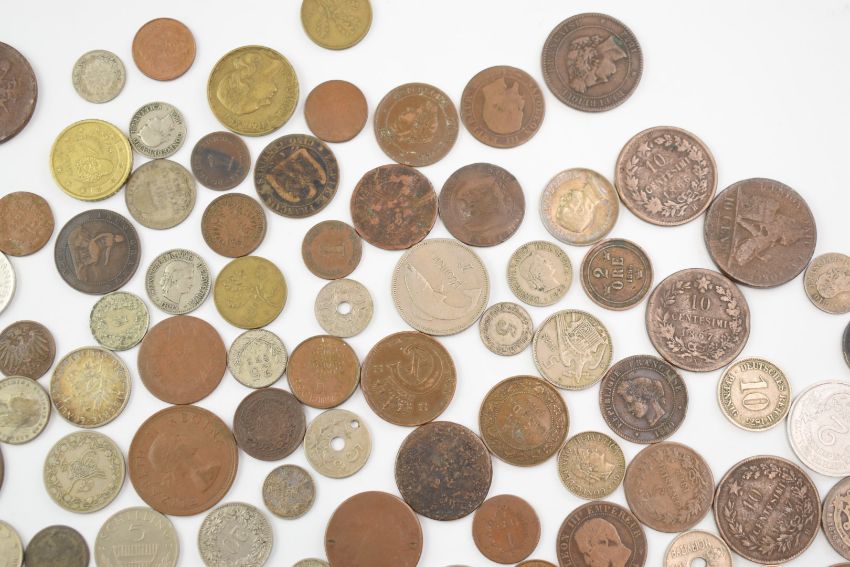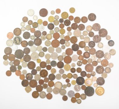 An interesting collection of world coinage, 18thC onwards but largely 19thC including USA, Russia, Germany, Belgium, Denmark, Sweden, Norway, Austria, Italy, Switzerland, India, Middle East, South Africa, Province of Canada, East India Company, Channel Islands Provincial halfpennies, Ireland etc, some silver content