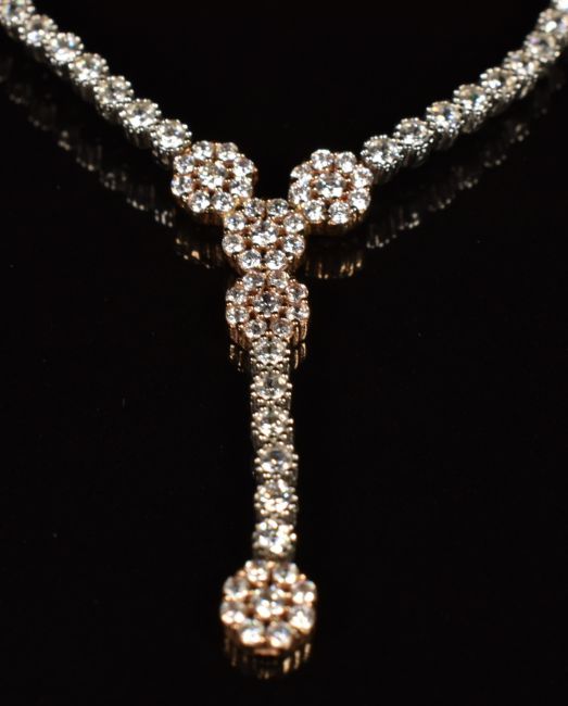 A 14k gold bi-coloured necklace set with cubic zirconia with matching earrings, 9.8g