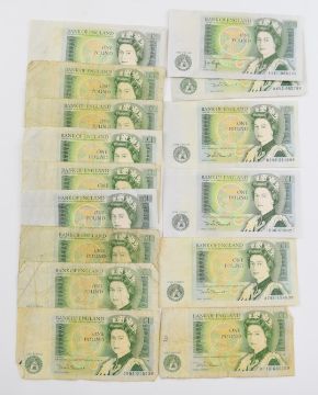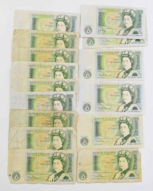 Bank of England banknotes collection comprising twenty three £1 Somerset 1980’s (including nine consecutive notes DY04 890339 – 47), two Peppiatt 1940-1948 WW2 issue, two £1 Beale 1950, four £1 1970’s, nine 10 shillings 1970’s, three 10 shillings 1950, £5 Lion & Key 1961 Type 2 signed L.K. O’Brien and £5 Series E