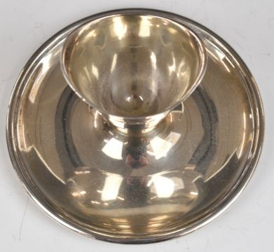George V hallmarked silver egg cup with integral stand/saucer, Sheffield 1926, maker John Round & Son Ltd, height 6cm, weight 81g