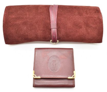 Cartier leather and suede jewellery travel case and a Cartier leather card holder
