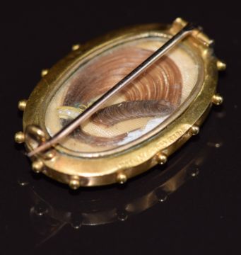 Victorian 15ct gold brooch set with seed pearls, glass compartment verso, 4.5g