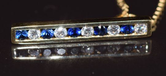 An 18ct gold pendant set with alternating sapphires and diamonds, on 18ct gold chain, 6.3g