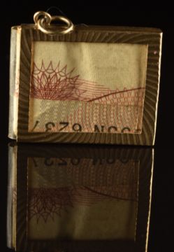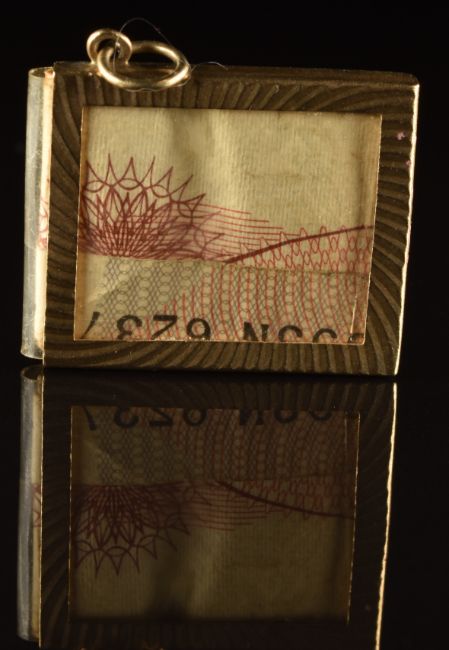 A 9ct gold pendant / charm set with a 10 shilling note