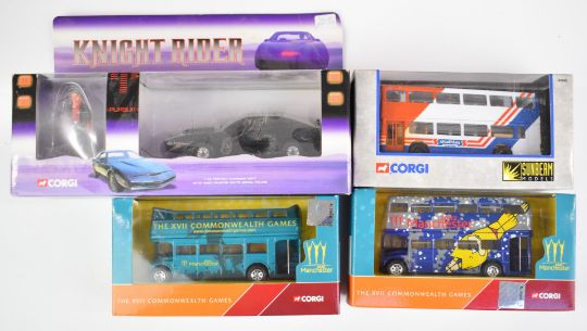 Twelve Corgi diecast model car sets to include military, public transport, TV/Film and emergency service vehicles, all in original boxes.