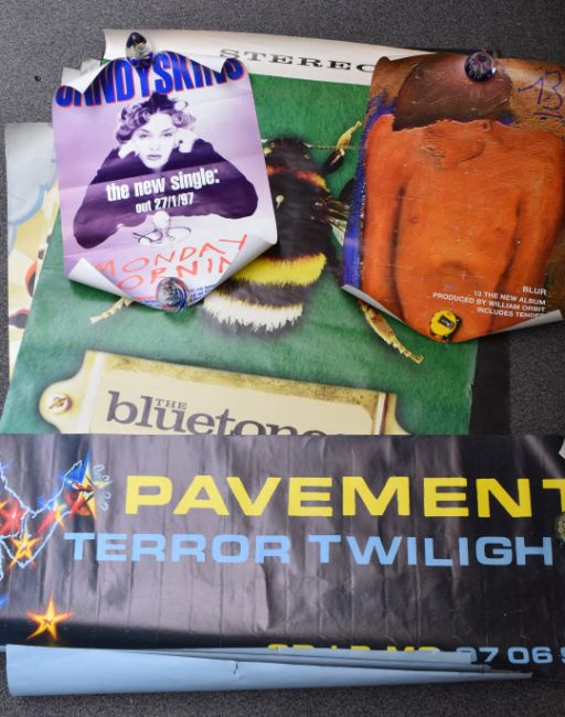 A collection of music posters, including three Finch 'Say Hello to Sunshine', The Bluetones 'Slight Return', The Almighty 'Power Trippin' (all approximately 149 x 100cm), Pavement 'Terror Twilight', Blur '13' (51 x 76cm) and Candyskins 'Monday Morning'