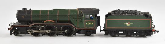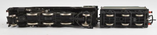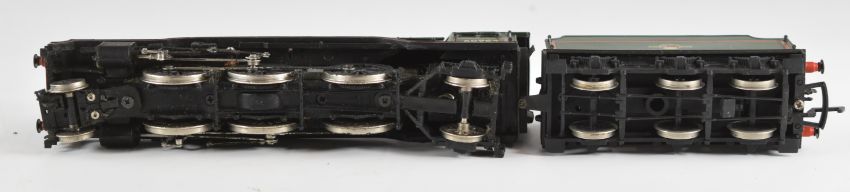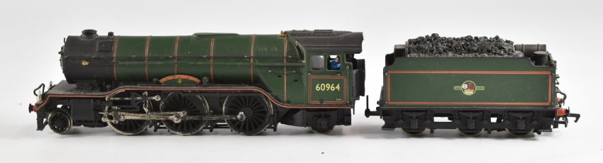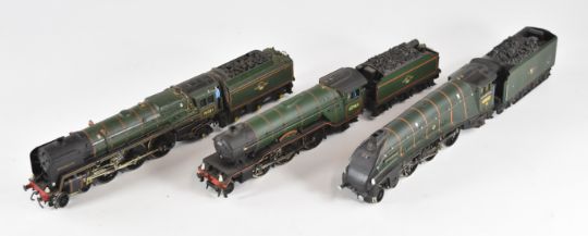 Three 00 gauge model railway steam tender locomotives comprising Hornby A4, Bachmann V2 and kit built Morning Star