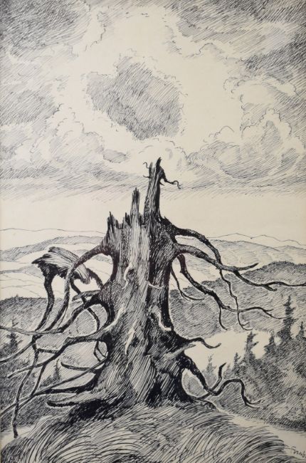 Ernst (Arnost) Hrabal (Czechoslovakian 1886-1969) pair of pen and ink studies of trees, both signed, 29.5 x 19.5cm in black frames