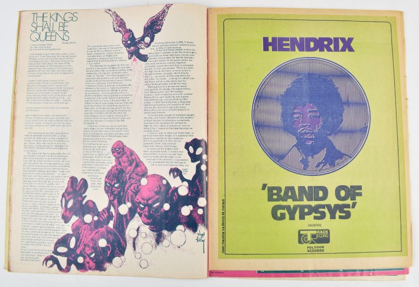 Four 1960s OZ magazines, including OZ 28 'School Kids Issue', OZ 27 'Acid OZ', OZ 31 'Yippie OZ' and OZ 29 'Female Energy', together with a March 1965 Rag Mag.