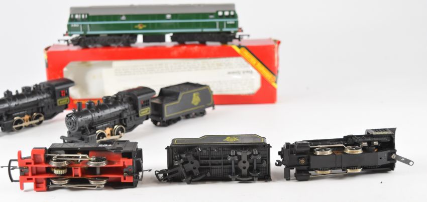 Eight 00 gauge model railway locomotives comprising three diesel locomotives and three steam locomotives, one in original box