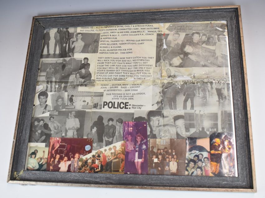 Demob - Gloucester Punk band, a collection of framed singles, ephemera, patches, personal photographs, cassette etc. Consigned by Johnny 'Ringo' Melfah, Demob drummer