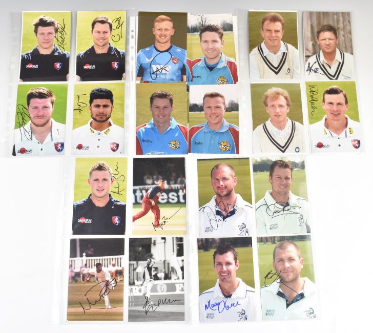 A collection of cricket related autographs to include signed phots of Zaheer Abbas, Colin Crowdrey, Heino Kuhn and a large selection of Kent County Cricket team members.