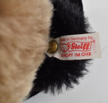 Steiff Paddington Bear Teddy bear with blue felt coat, black felt hat, medallion and label, 02199, 26cm tall.