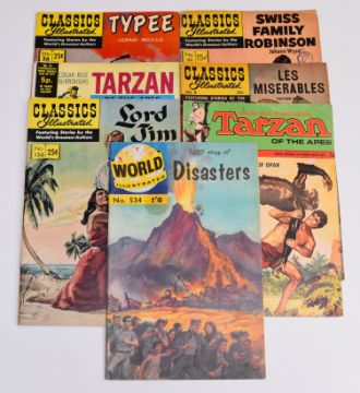 Thirteen Dell, Gold Key and Classics Illustrated comics to include Tarzan of the Apes, Mighty Samson, Les Miserables and The Young Rebels.