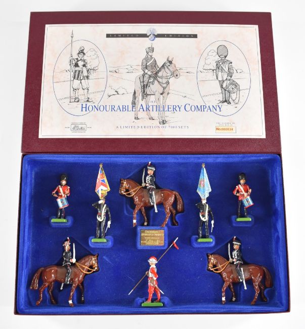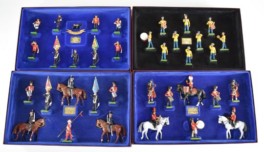 Four Britains Limited Edition 8 and 10 piece toy soldier box sets comprisng The United States Army Band of Washington D.C, 5391, The Staffordshire Regiment, 5194, The Royal Scots Dragoon Guards, 5290 and The Honorble Artillery Company, 5291, all in original boxes with cardboard outer sleeve.