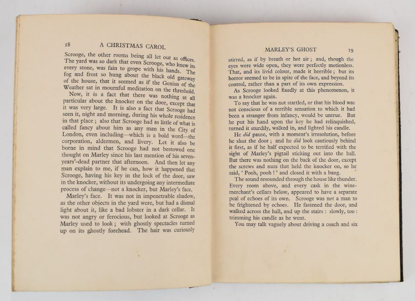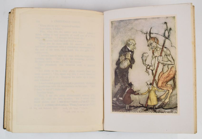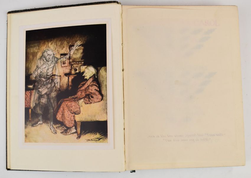 [Rackham] Charles Dickens A Christmas Carol illustrated by Arthur Rackham, published William Heinemann 1915 first edition containing 12 colour plates with black & white illustrations and endpapers, deluxe edition bound in full leather with gilt titles and decorations by the artist