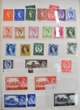 Stanley Gibbons album of mint GB commemorative stamps 1924-1981, together with a stockbook of mint GB stamps including early castles etc