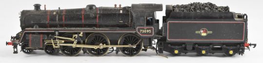 Four 00 gauge model railway steam tender locomotives comprising kit built finescale 5MT, two Mainline 4MT and a Tri-ang 9F