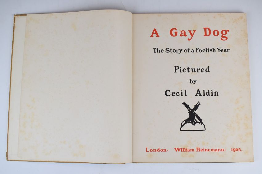 A Gay Dog The Story of a Foolish Year Pictured by Cecil Aldin, published William Heinemann 1905 first edition folio with 24 colour illustrations, in cloth backed boards with colour illustrated cover