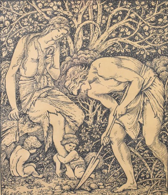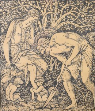 Edward Coley Burne-Jones (1833-1898) woodcut featuring Adam and Eve, 44 x 32cm, in black frame